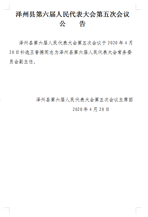 澤州縣第六屆人民代表大會(huì)第五次會(huì)議