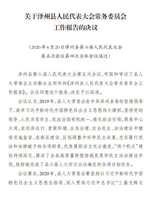 關(guān)于澤州縣人民代表大會(huì)常務(wù)委員會(huì)